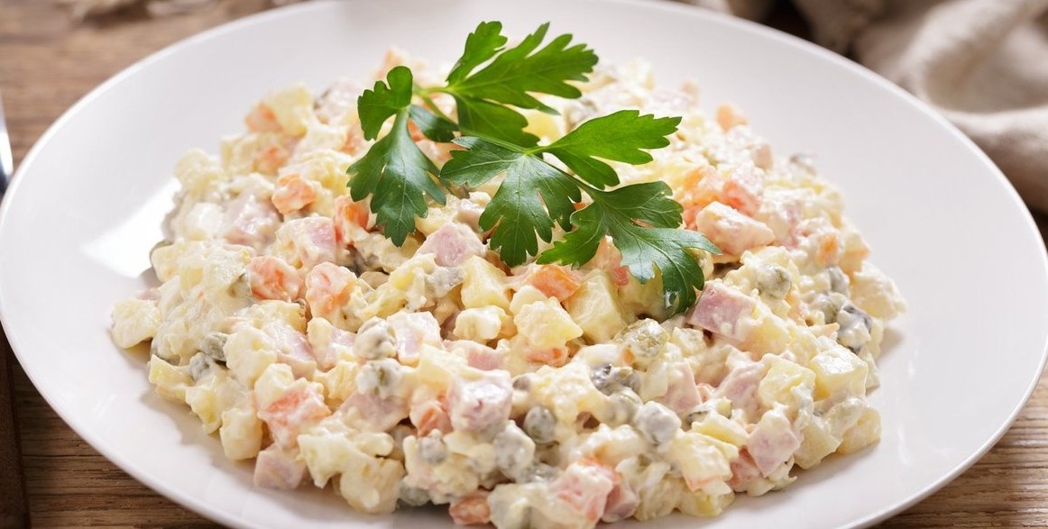დაჭრა: შეეცადეთ, ყველა ინგრედიენტი (ხორციც და ბოსტნეულიც) მწვანე ბარდის ზომის კუბიკებად დაჭრათ — ეს კლასიკური "ოლივიეს" ოქროს წესია.