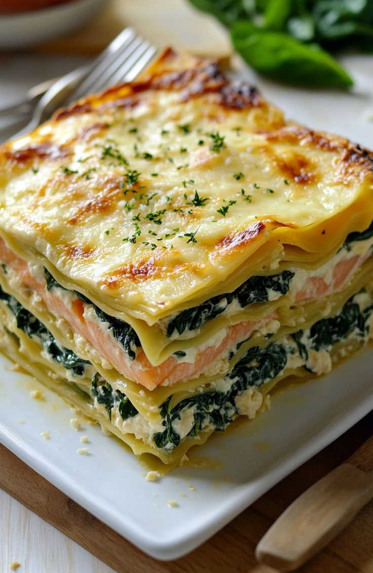 - ახალი ისპანახი: გარეცხეთ. ტაფაზე მოათავსეთ ცოტაოდენი კარაქი, მოშუშეთ ისპანახი, სანამ არ ჩავარდება. კარგად გაწურეთ ზედმეტი სითხისგან (ეს ძალიან მნიშვნელოვანია, რომ ლაზანია წყლიანი არ გამოვიდეს). გაყინული ისპანახი: გაალღვეთ და ასევე კარგად გაწურეთ.