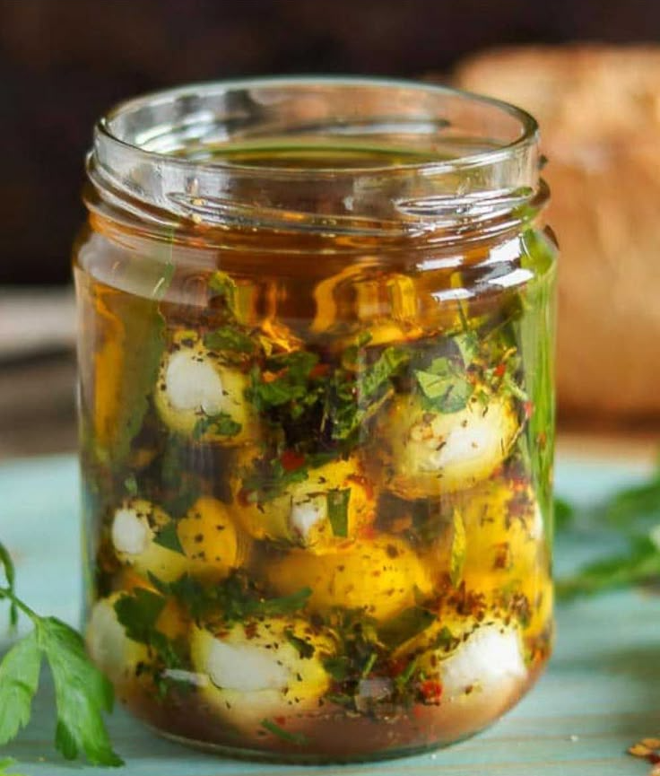 - ჯამის მთლიანი შიგთავსი გადაიტანეთ ქილაში და დაასხით ხარისხიანი ზეითუნის ზეთი.