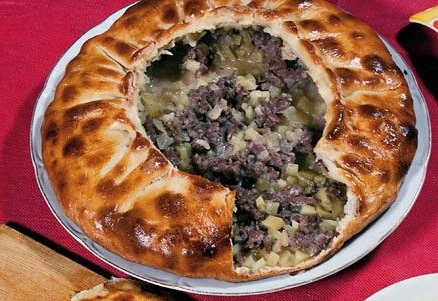 მზად არის! ეს ღვეზელი გამოდის საოცრად არომატული ცხვრის ხორცისა და დუმის წყალობით.
