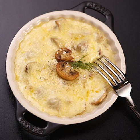 რეცეპტი იწყება ხახვისა და სოკოს მოშუშვით მცენარეულ ზეთში "შეწვის" რეჟიმზე. ფქვილის დამატება უზრუნველყოფს სოუსის სასურველ სისქეს. შემდეგ ემატება ძირითადი ინგრედიენტები: ცხიმიანი ნაღები, კარაქი და გახეხილი ყველი.