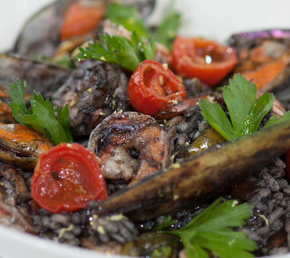 მოამზადეთ საოცრად არომატული და მდიდარი კერძი მულტიქურა გამოყენებით! დაიწყეთ ხახვის, სტაფილოსა და ქათმის მკერდის მოთუშვით ზეითუნის ზეთში. შემდეგ დაამატეთ ბრინჯი და ბულიონი და მოამზადეთ ნახევრად მზადყოფნამდე. საბოლოოდ, კერძს ემატება ზღვის საგანძური: ვირთევზას ფილე, მწვანე ბარდა და ზღვის კალმარის მელანი ბრინჯს მუქ ფერსა და ინტენსიურ გემოს სძენს. ზემოდან ეწყობა კრევეტები და მიდიები, რომლებიც დაბალ ტემპერატურაზე სრულყოფილად იხარშება. სუფრაზე მიტანის წინ მორთეთ ჩერი პომიდვრით, ოხრახუშით, ლიმონის ცედრით და ზეითუნის ზეთით. ეს არის მარტივად მოსამზადებელი, მაგრამ სადღესასწაულო კერძი!