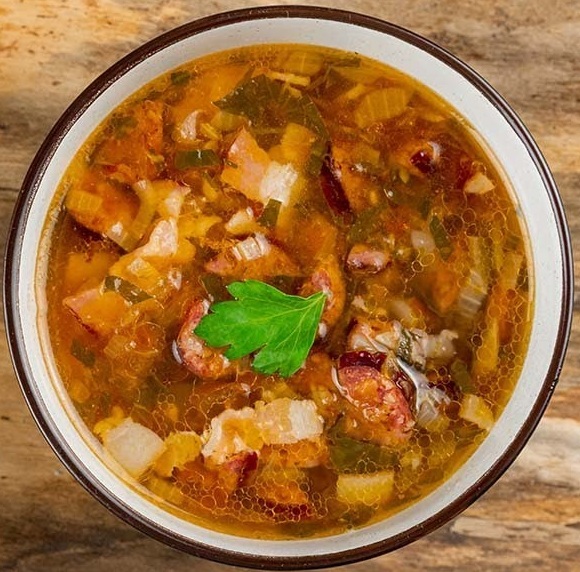ტომატის წვნიანი მჟავე კომბოსტოთი და შებოლილი ძეხვეულით